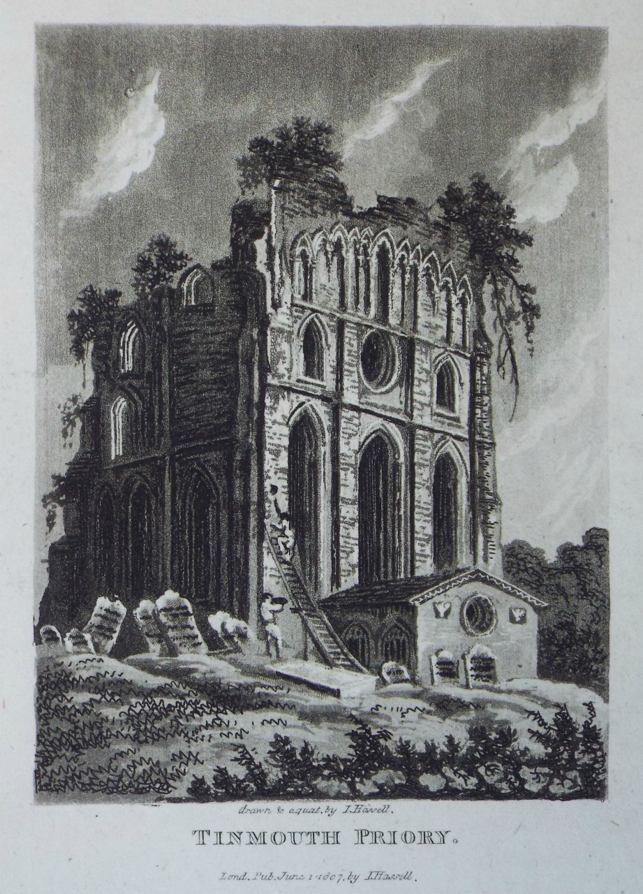 Antique Aquatint - "Tinmouth Priory." by J Hassell published 1807 by J Hassell, London.