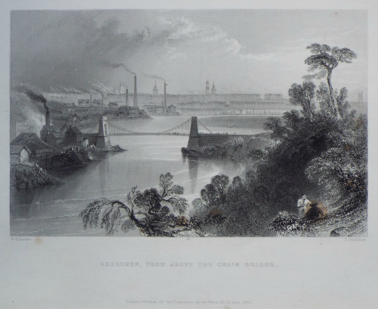 Antique Print - "Aberdeen, from above the Chain Bridge." by S Bradshaw after W H Bartlett published 1840 by Geo Virtue, 26 Ivy Lane.