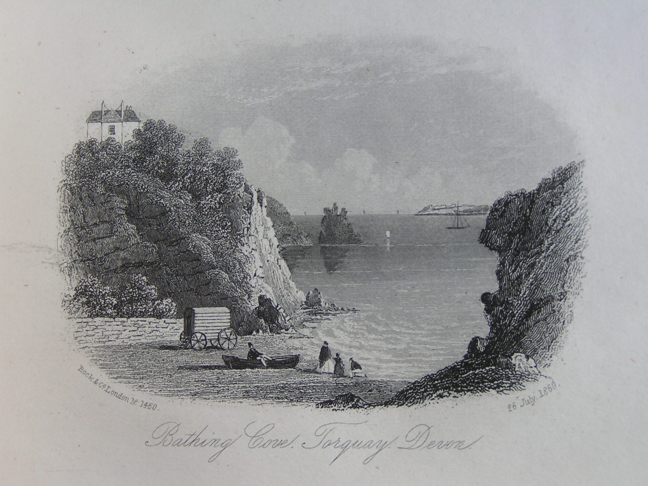 Antique Steel Vignette - "Bathing Cove, Torquay, Devon" by & Co Rock published 1860.