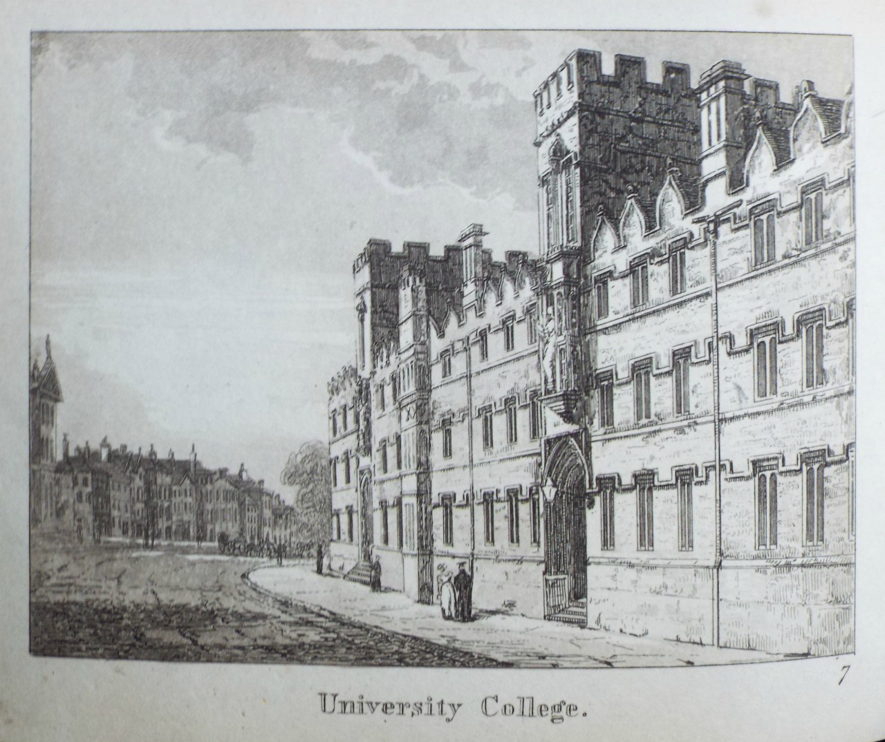 Antique Aquatint - "University College." published 1824 by H Slatter, Herald Office, Oxford.