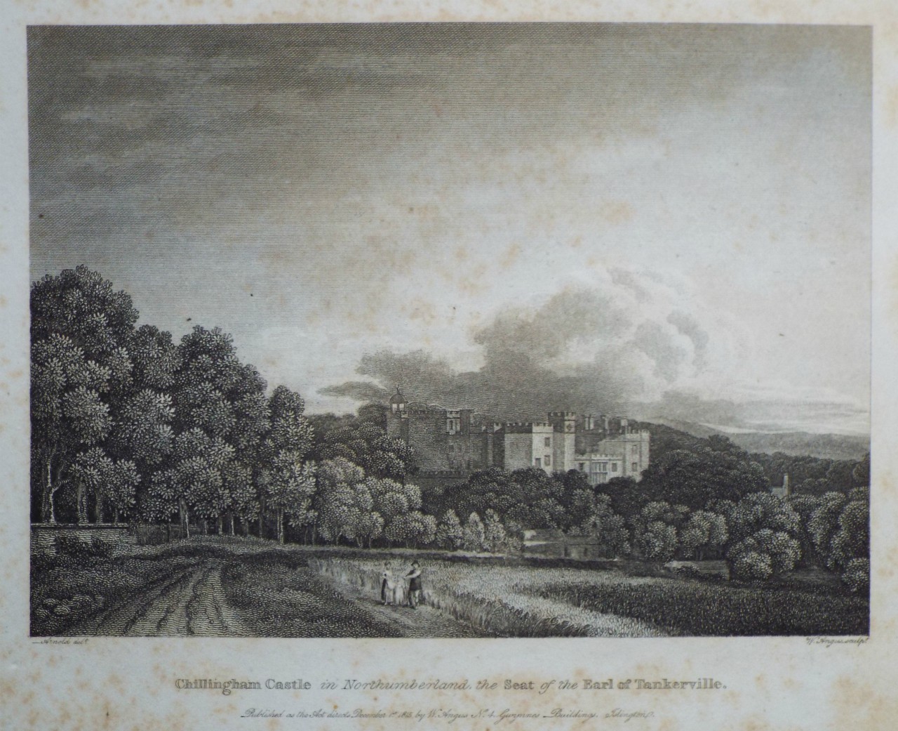 Antique Print - "Chillingham Castle in Northumberland, the Seat of the Earl of Tankerville." by W Angus after published 1815 by W. Angus, No. 4 Gwynne's Buildings, Islington.