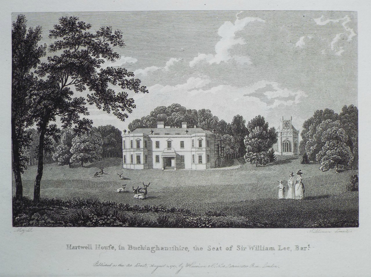 Antique Print - "Hartwell House, in Buckinghamshire, the Seat of Sir William Lee, Bart." by after published 1787 by Harrison & Co, No. 18 Paternoster Row, London.