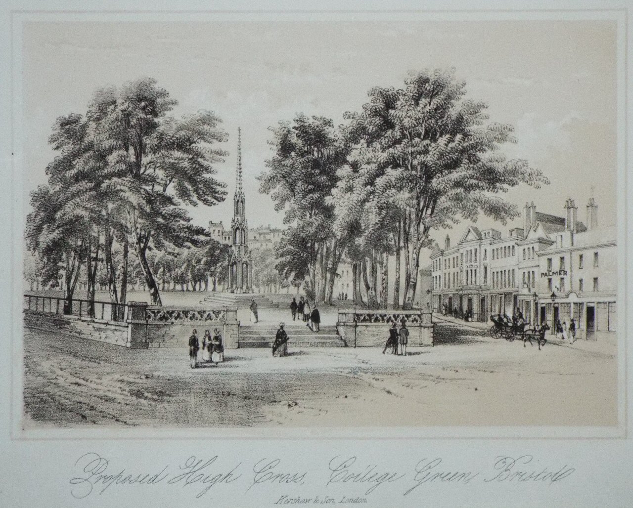 Antique Lithograph - "Proposed High Cross, College Green, Bristol." published by Kershaw & Son, London.