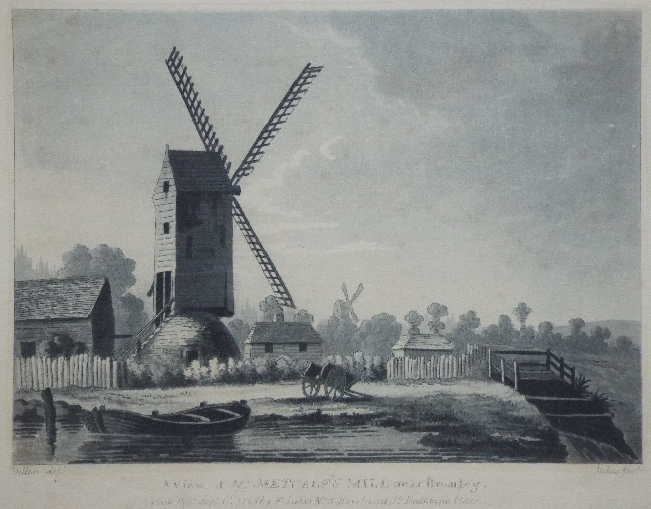 Antique Aquatint - "View of Mr. Metcalf's Mill, near Bromley." by after published 1785 by F.Jukes No. Howland St. Rathbone Place.