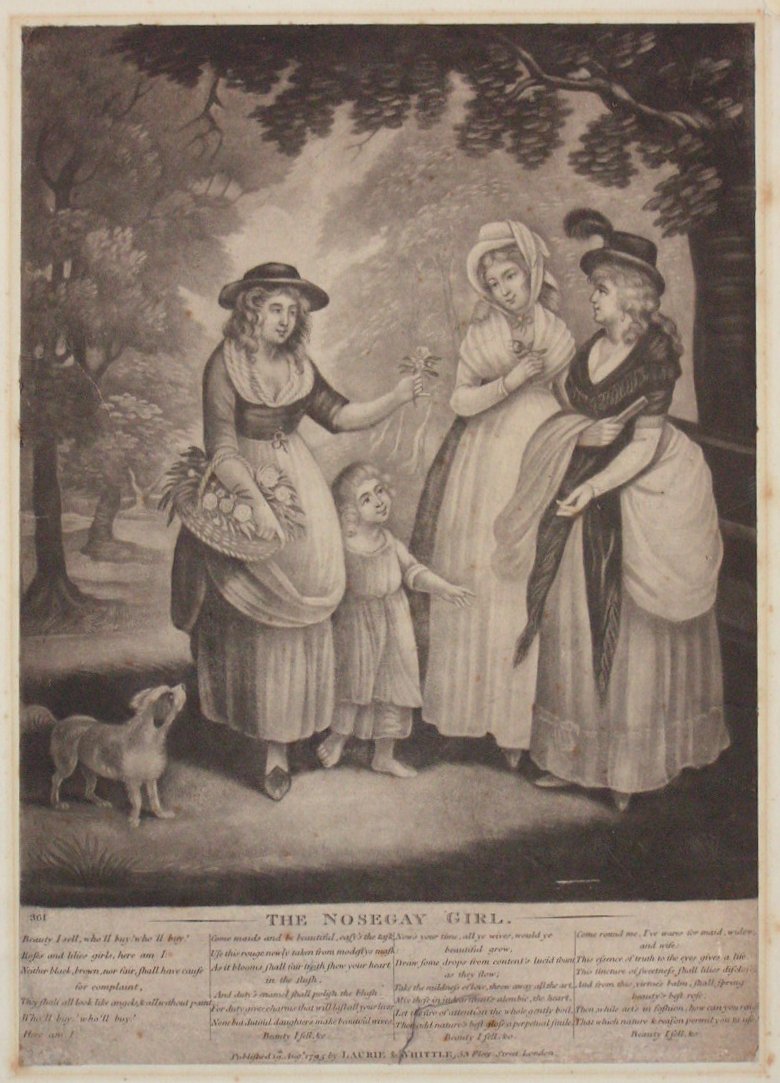 Antique Mezzotint - "The Nosegay Girl" published 1795 by Laurie & Whittle 53 Fleet Street.