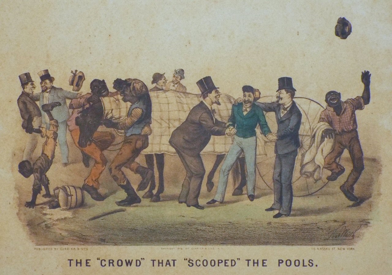 Antique Lithograph - "The "Crowd" that "Scooped" the Pools." after T Worth published by Currier & Ives, New York.