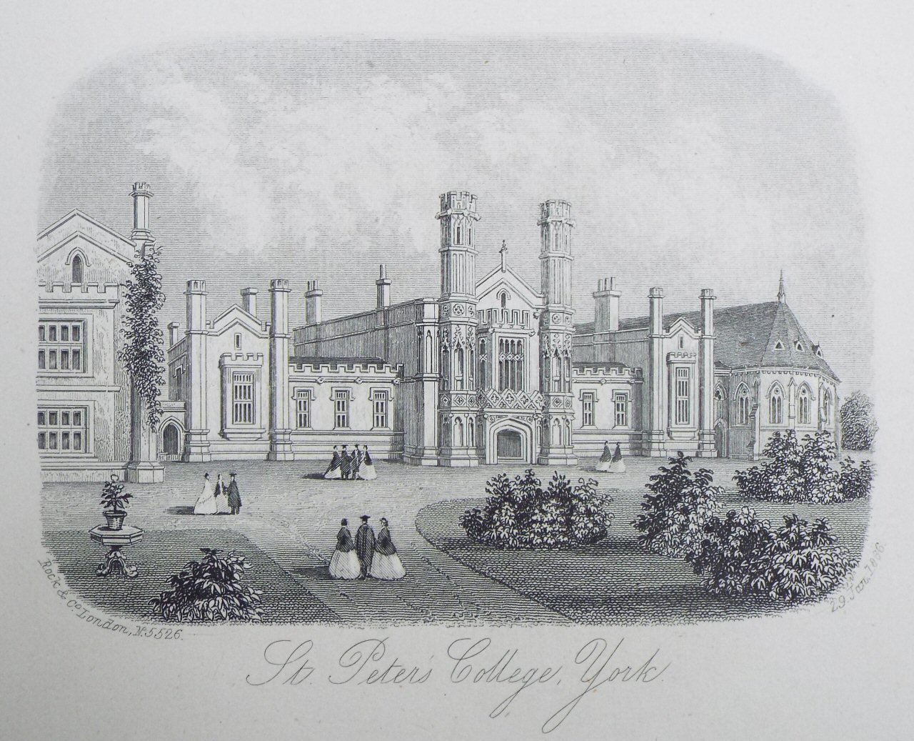 Antique Steel Vignette - "St. Peter's College, York." by & Co Rock published 1866.