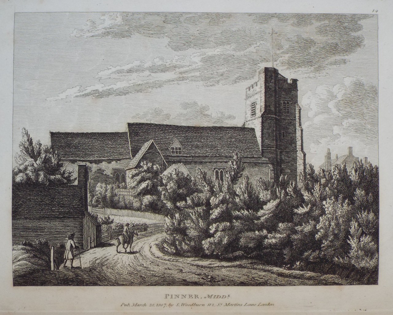 Antique Print - "Pinner, Middx." published 1807 by S Woodburn.