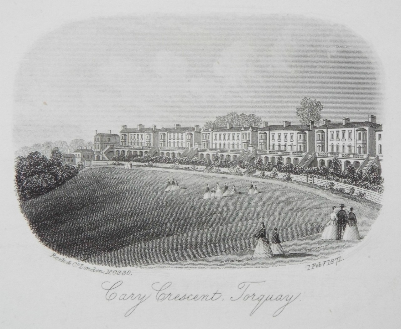Antique Steel Vignette - "Cary Crescent, Torquay." by & Co Rock published 1871. |