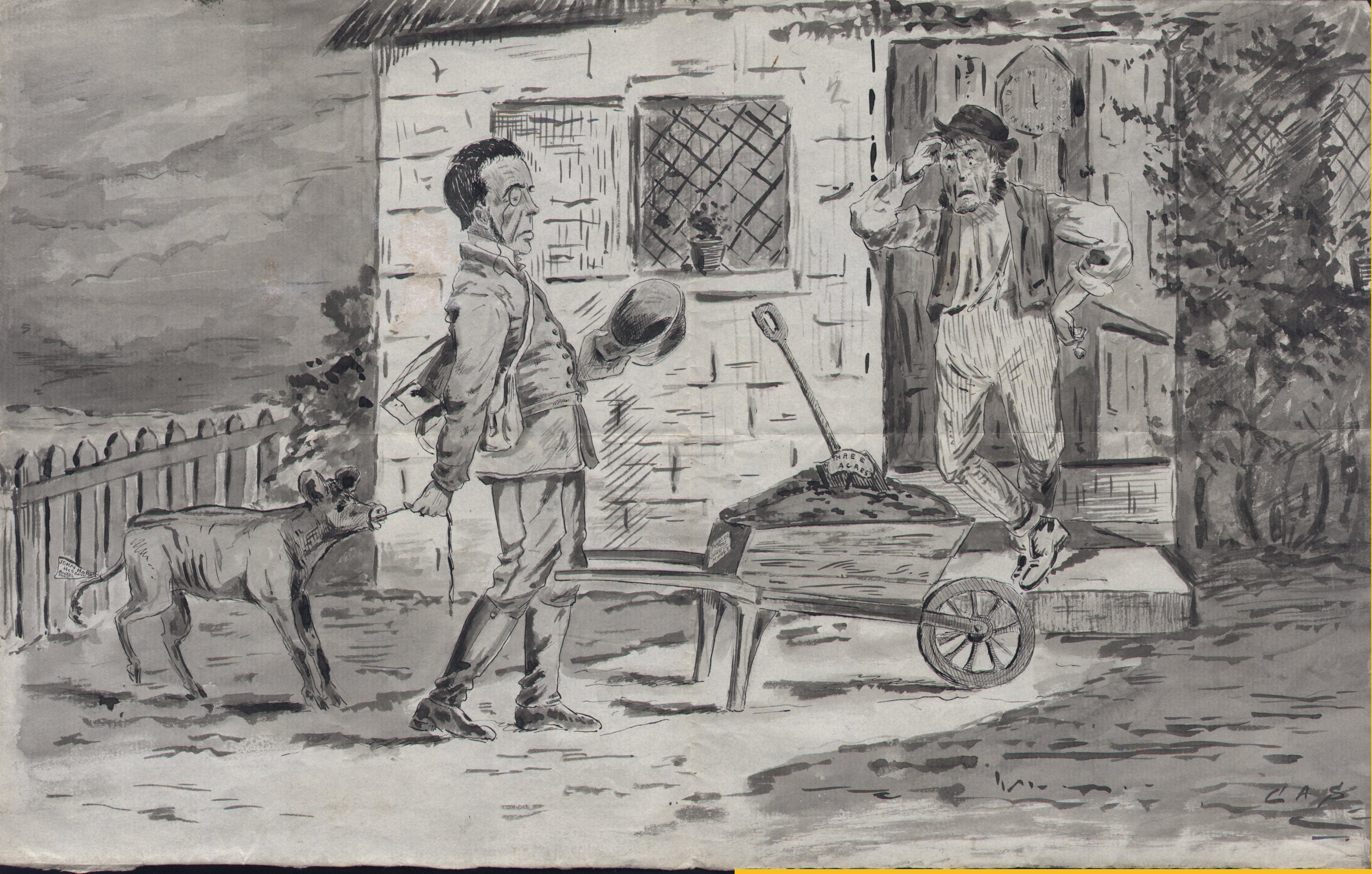 | 'The Country Postman' grey wash and ink signed with initials,also inscribed on reverse 'C.A.Shepperson, 1 Vaughan Parade Torquay' |