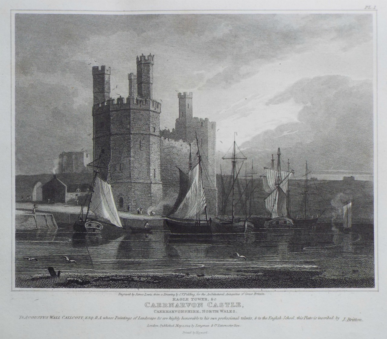 Antique Print - "Eagle Tower, &c Caernarvon Castle, Caernarvonshire, North Wales." by J Lewis after C V Fielding published 1814 by Longman & Co, Paternoster Row.