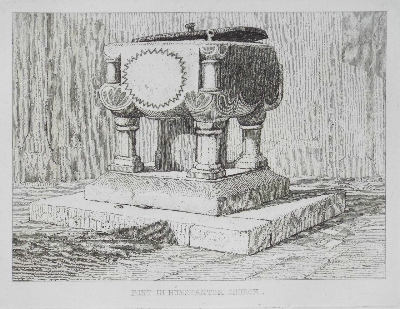 Antique Etching - "Font in Hunstanton Church" by J S Cotman published 1817 by J S Cotman.