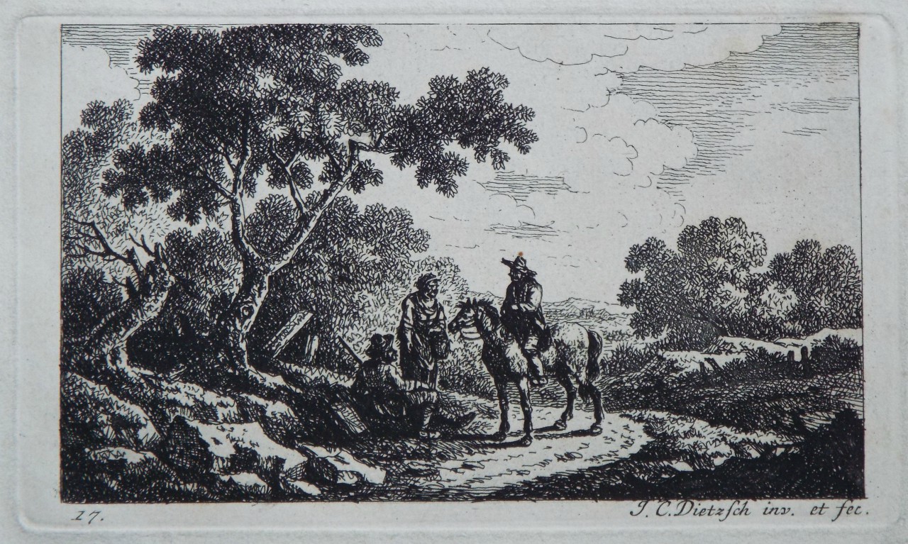 Antique Etching - "Travellers on a Track" by J C Dietzsch.