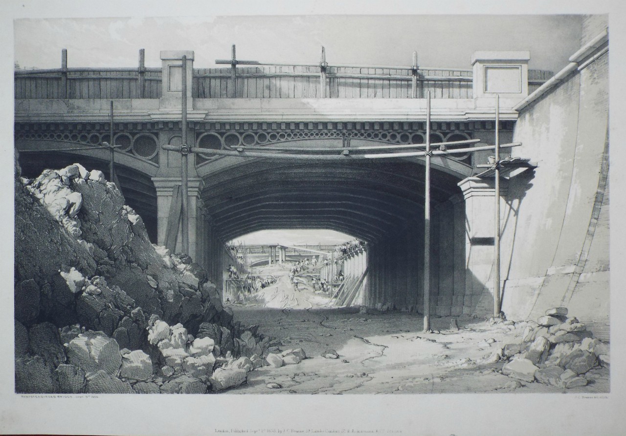 Antique Lithograph - "Hampstead-Road Bridge. Sept. 5th 1836." by J C Bourne published 1838 by J. C. Bourne 19 Lamb's Conduit St. & Ackrermann & Co. Strand.