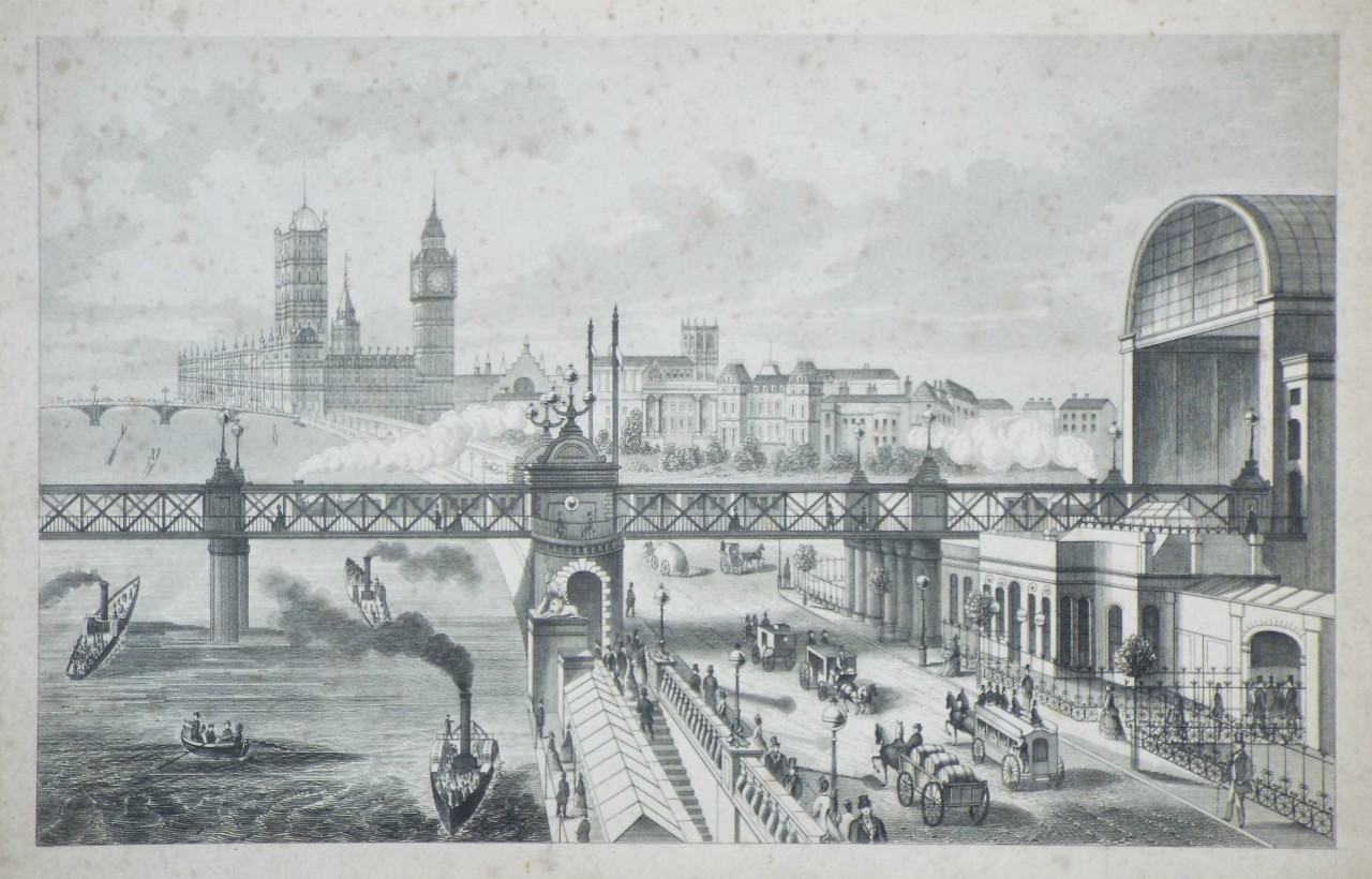 Antique Print - "Hungerford Bridge, Charing Cross Station and the Embankment".