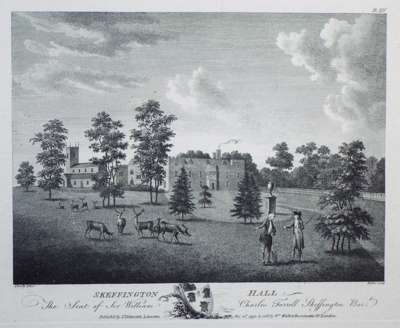 Antique Print - "Skeffington Hall." by J Walker after J Throsby published 1790 by J Throsby, Leicester.