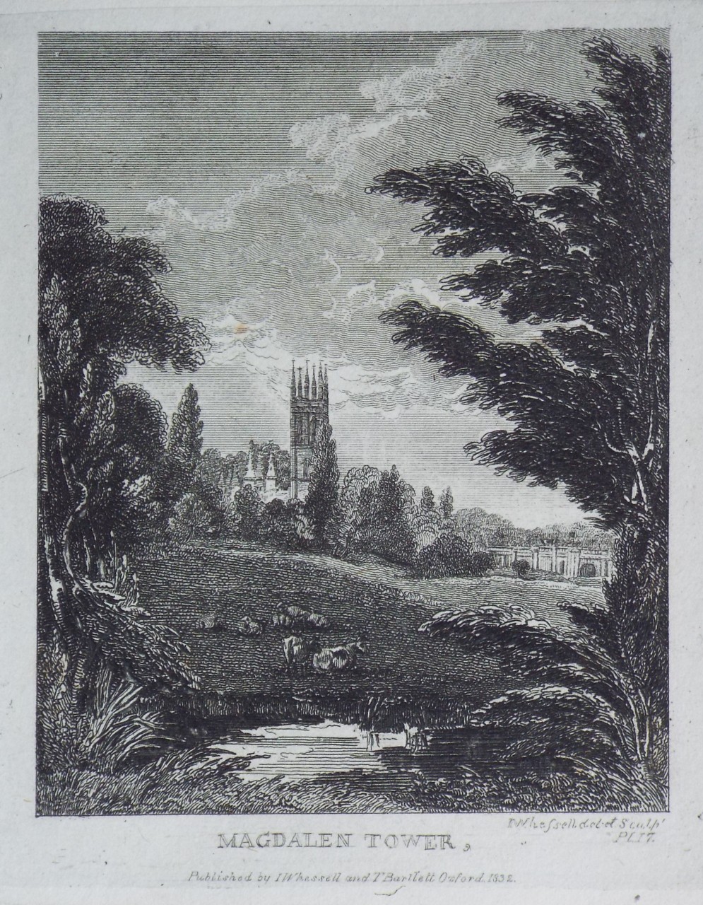 Antique Print - "Magdalen Tower." by J Whessell published 1832 by J. Whessell & T. Bartlett, Oxford .