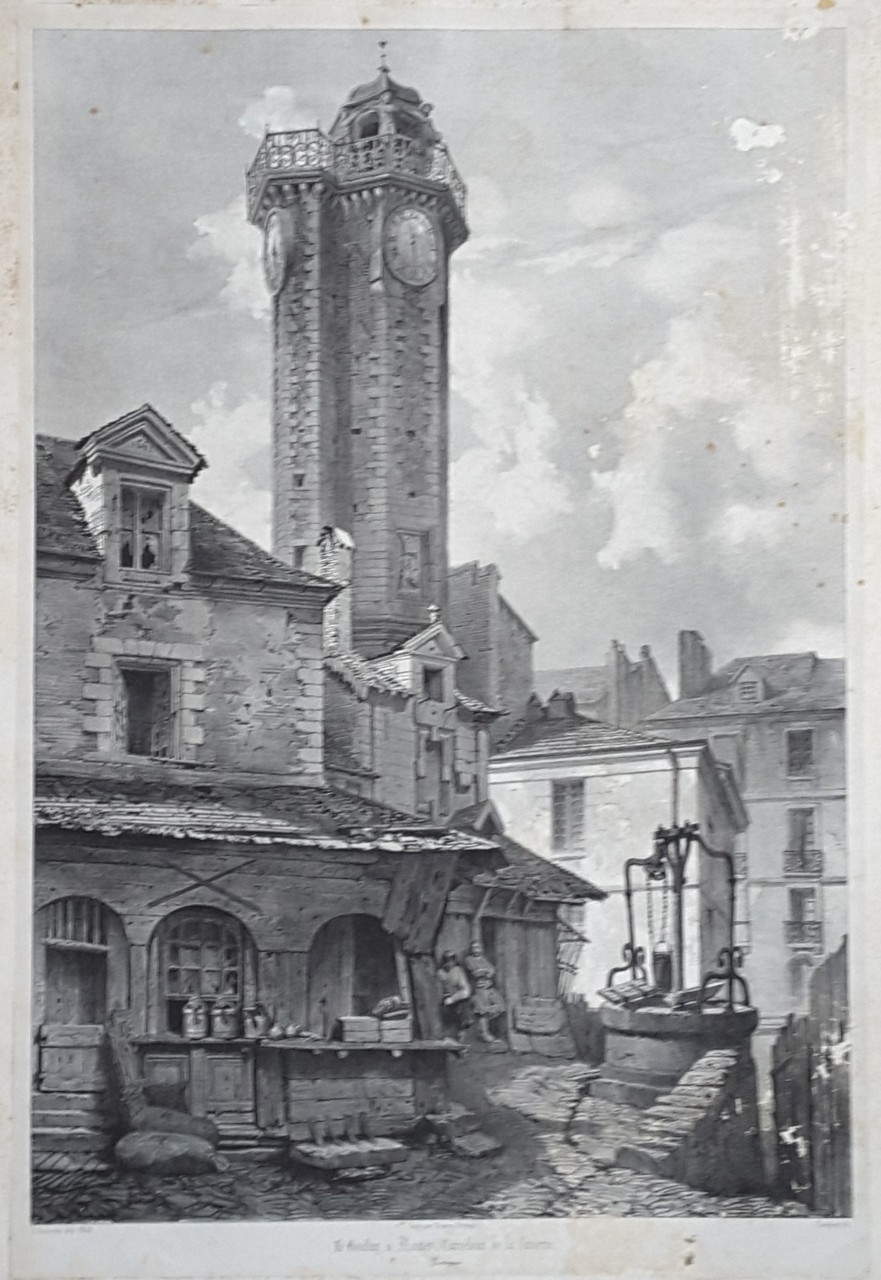 Antique Lithograph - "Le Bouffay, a Nantes, Carrefour de la Canerie." by A Dauzats after published 1845.
