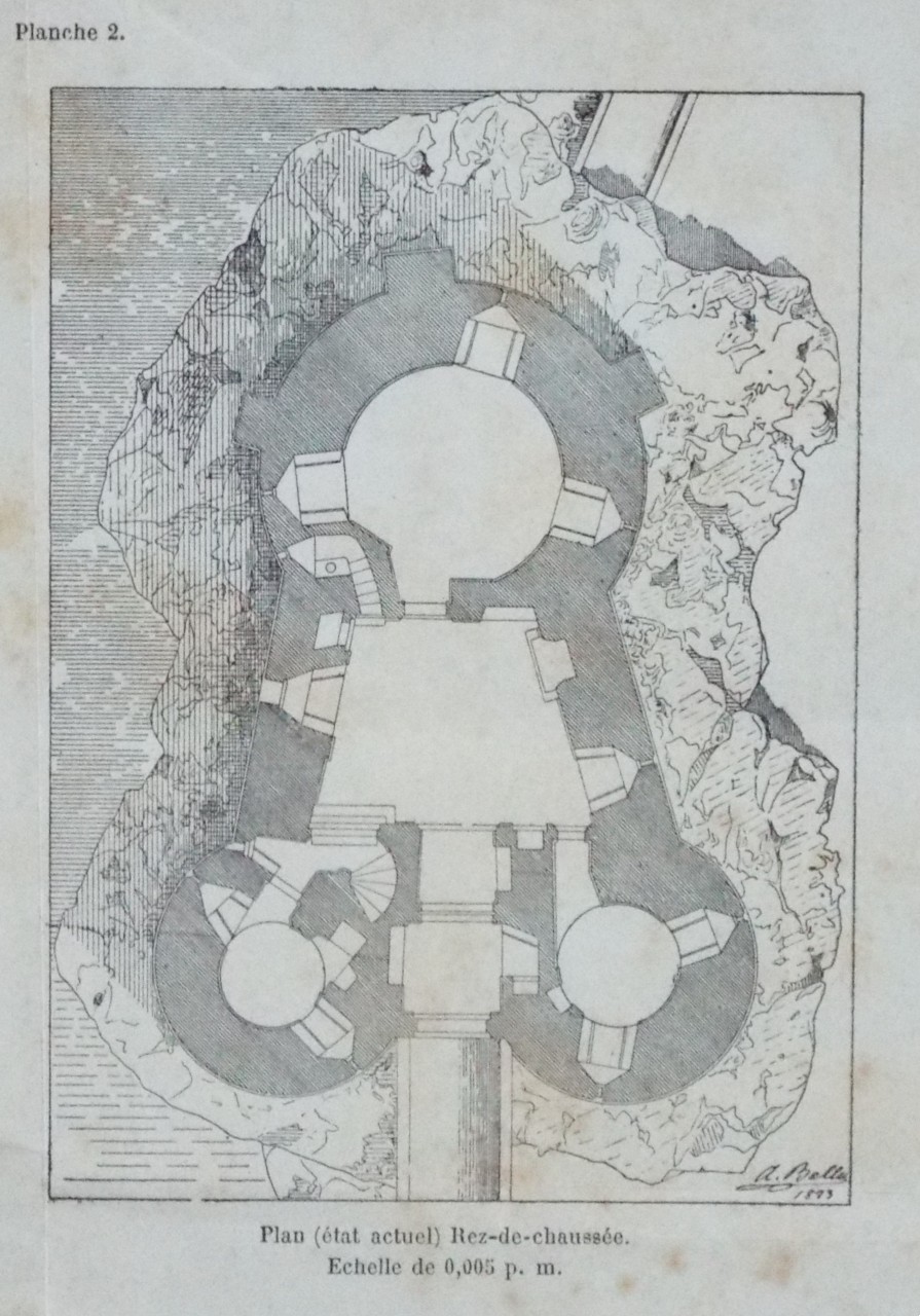 Antique Wood - "Plan (etat actuel) Rez-de-Chaussee. Echelle de 0.005 p. m." after A Ballu published 1883.