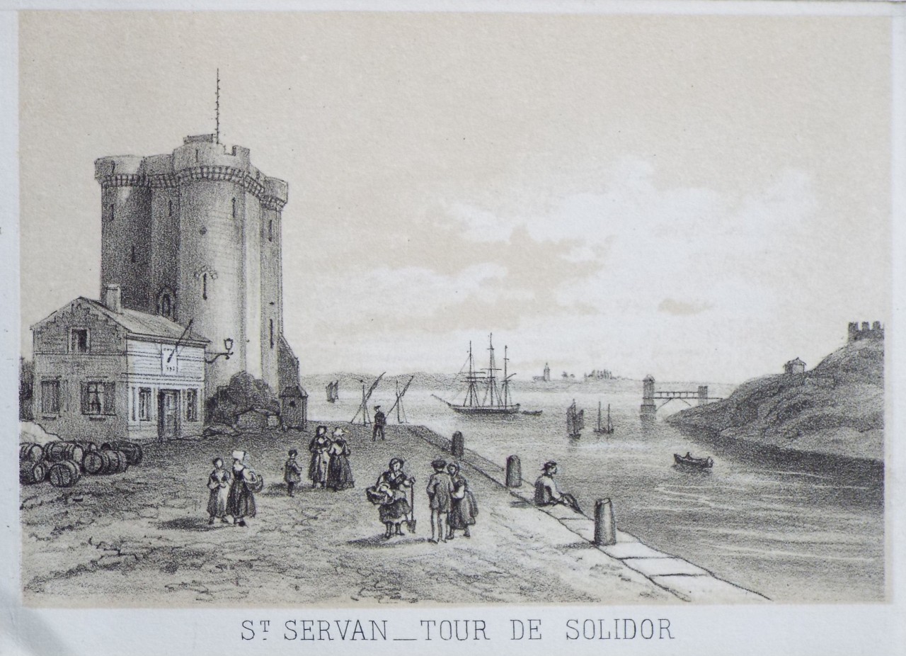Antique Lithograph - "St. Servan - Tour de Solidor" published by F. Sinnett, Editeur rue d'Argenteuil, 17.