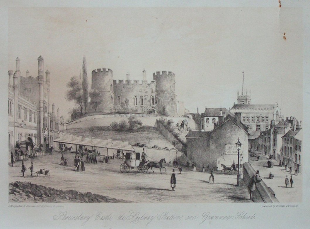 Antique Lithograph - "Shrewsbury Castle, the Railway Station, and Grammar Schools" by & Co Newman published by W Wilde, Shrewsbury. |