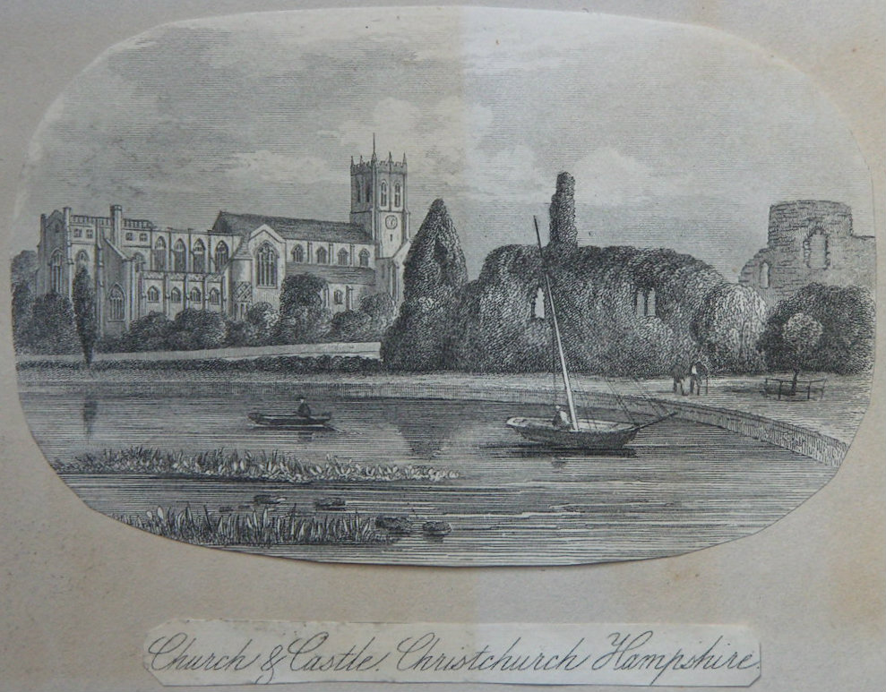 Antique Steel Vignette - "Church & Castle, Christchurch Hampshire".