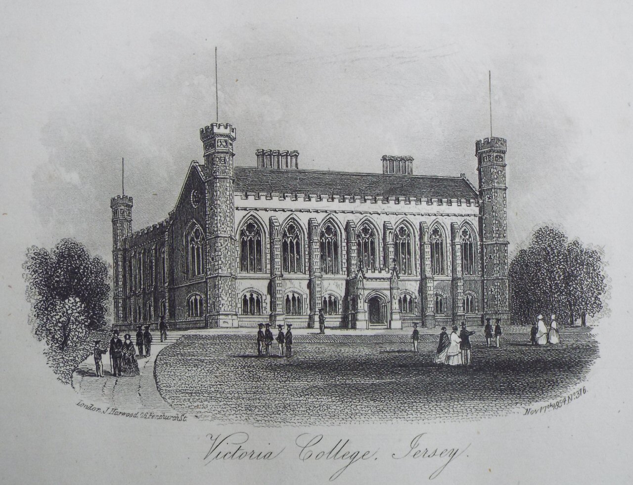Antique Steel Vignette - "Victoria College, Jersey" by Harwood J published 1854.