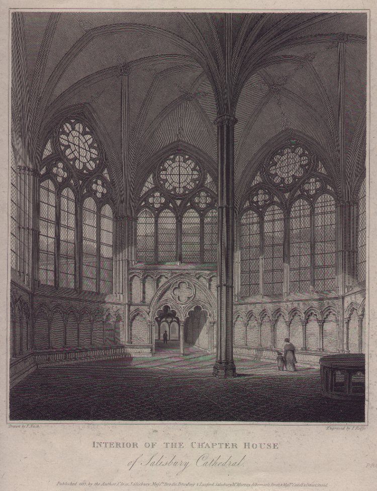 Antique Print - "Interior of the Chapter House of Salisbury Cathedral" by I Roffe after F Nash published 1813.
