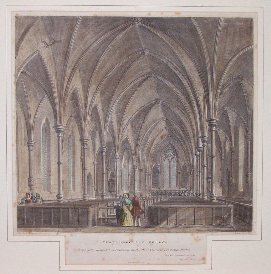 Antique Lithograph - "Trowbridge New Church, Respectfully Dedicated by Permission to the Revd. Francis Fulford, Rector, By his obedient servant Joseph Holloway." by J Holloway after W Millington published 1838 by