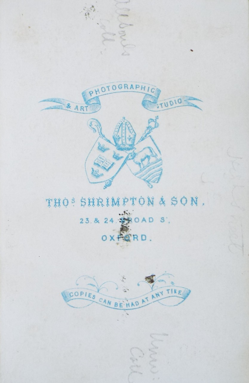 | | High Street and All Souls College Ref: P/36398 County: Oxfordshire Location: Oxford Type: Carte de Visite Studio: Thos. Shrimpton & Son, 23 & 24 Broad St, Oxford