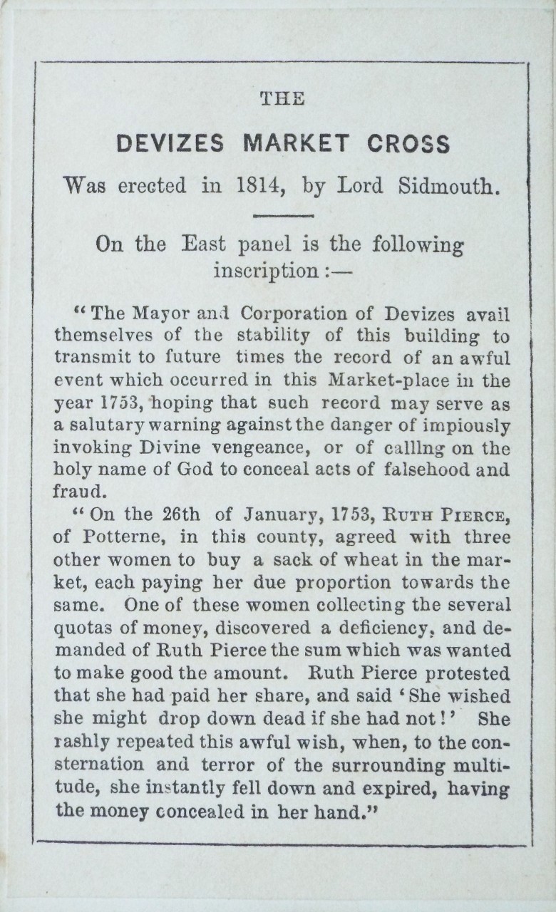| | Devizes Market Place Cross Carte de Visite Ref: P/27304 Location: Devizes