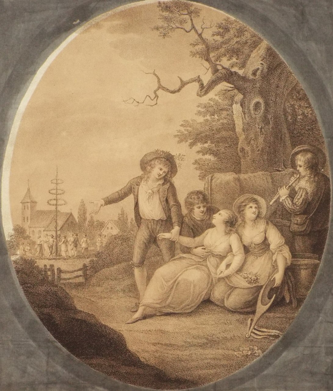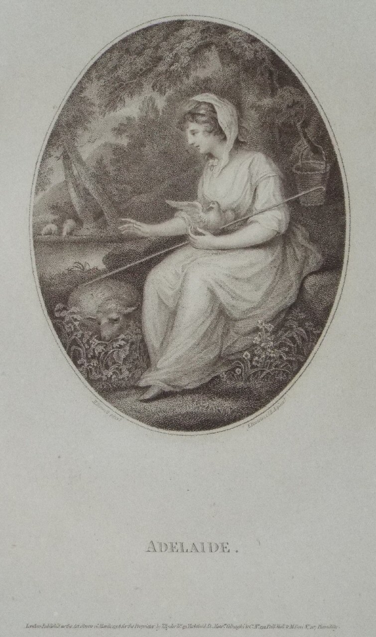 | The Spirit of a Child arriv'd in the Presence of the Almighty. And the Lamb which is in the midst of the Throne shall feed them and shall lead them unto living fountains of waters, and God shall wipe away all Tears from their Eyes. To Her Grace Mary Isabella... Ref: P/17136 Artist: Peters, William Engraver: Bartolozzi, Francesco Publisher: J & J Boydell at the Shakespeare Gallery, Pall Mall & No. 90 Cheapside Date: 1801
