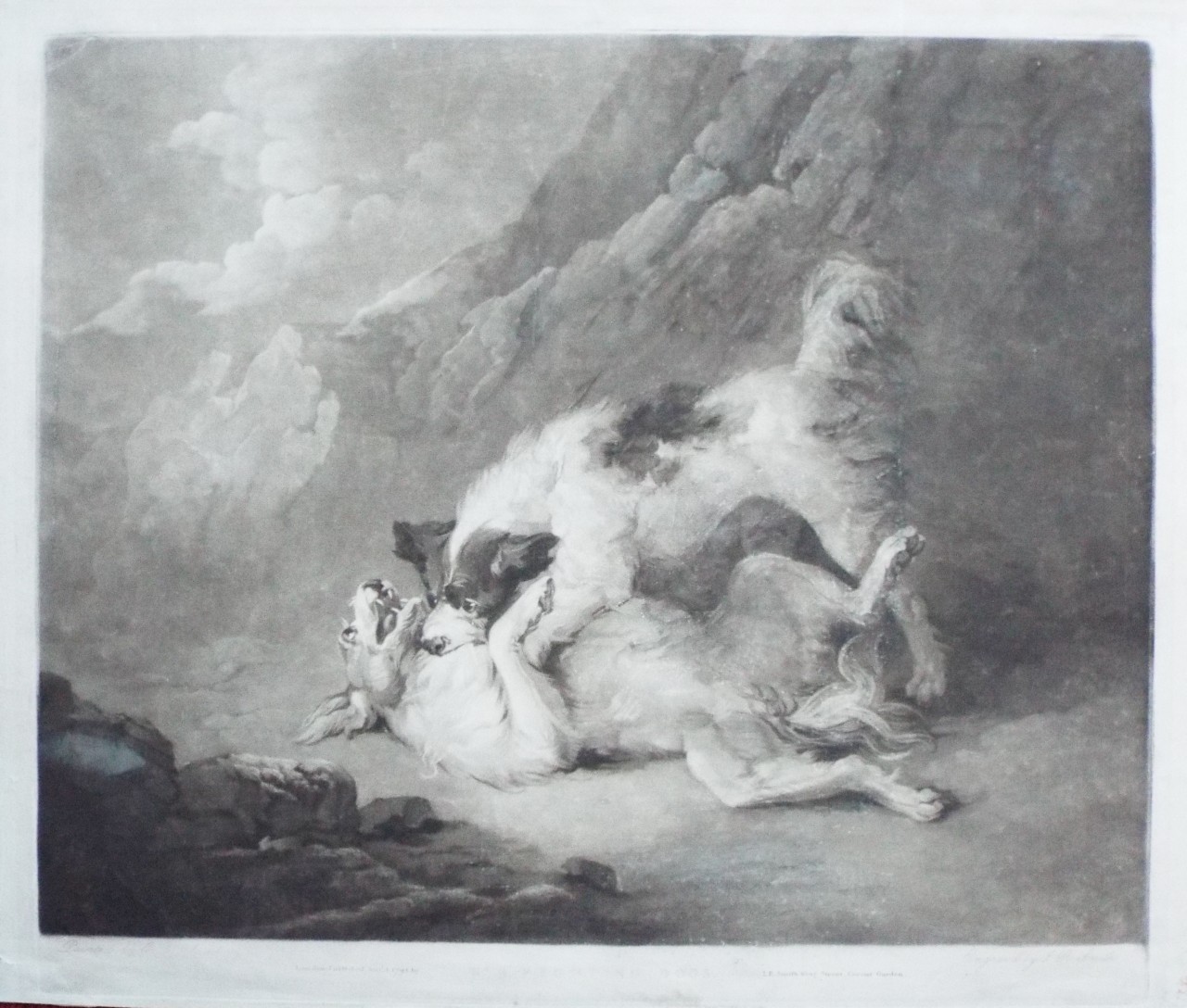 Antique Mezzotint - "No. 3. Fighting Dogs" by J R Smith after G Morland published 1794 by J. R. Smith King Street, Covent Garden.