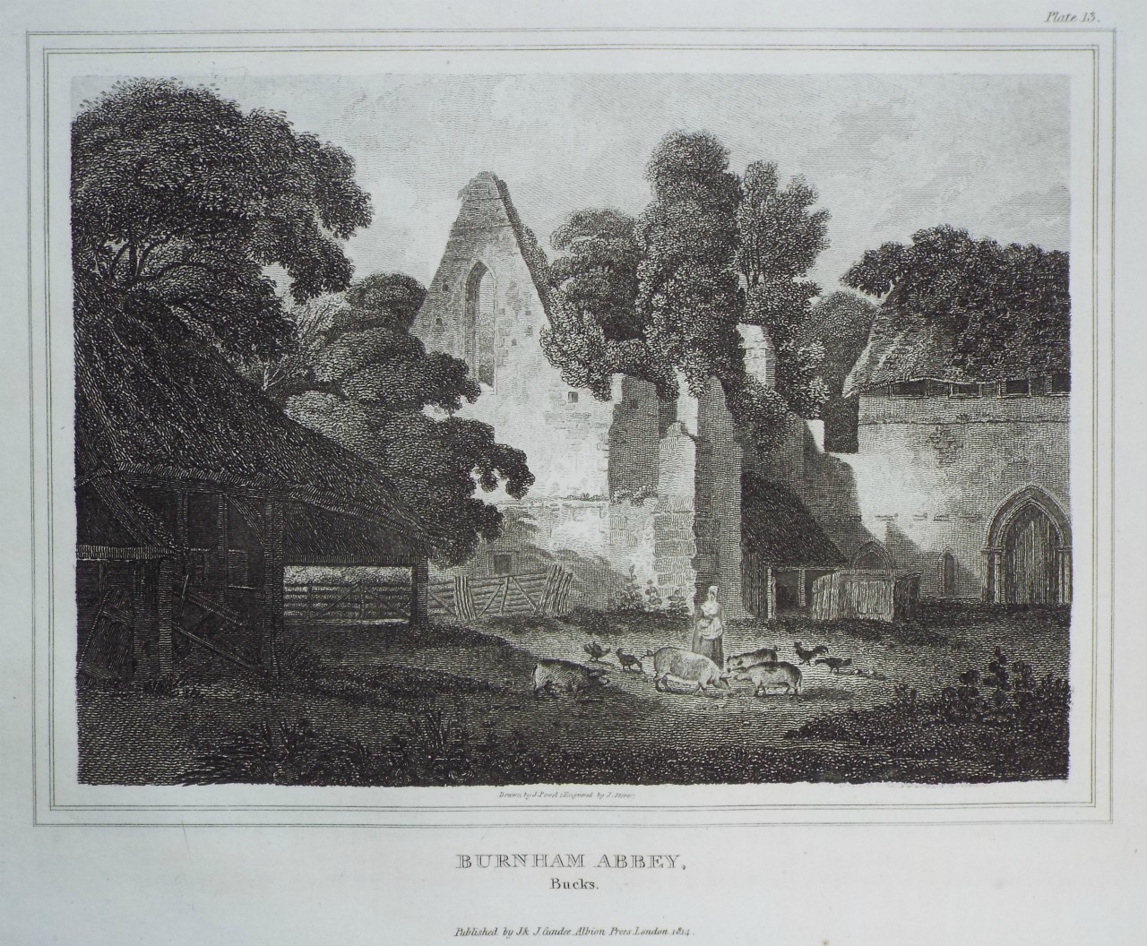 Antique Print - "Burnham Abbey, Bucks." by J Storer after T Powell published 1814 by J & J Cundee, Albion Press London.