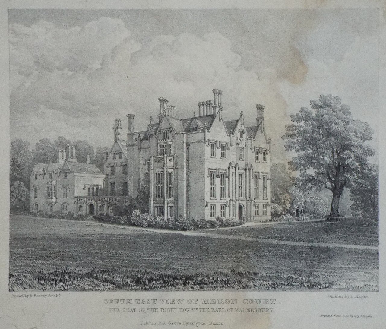 Antique Lithograph - "South East View of Heron Court. The Seat of the Right Honble. The Earl of Malmesbury" by L Haghe after J M Gilbert published by R A Grove, Lymington.