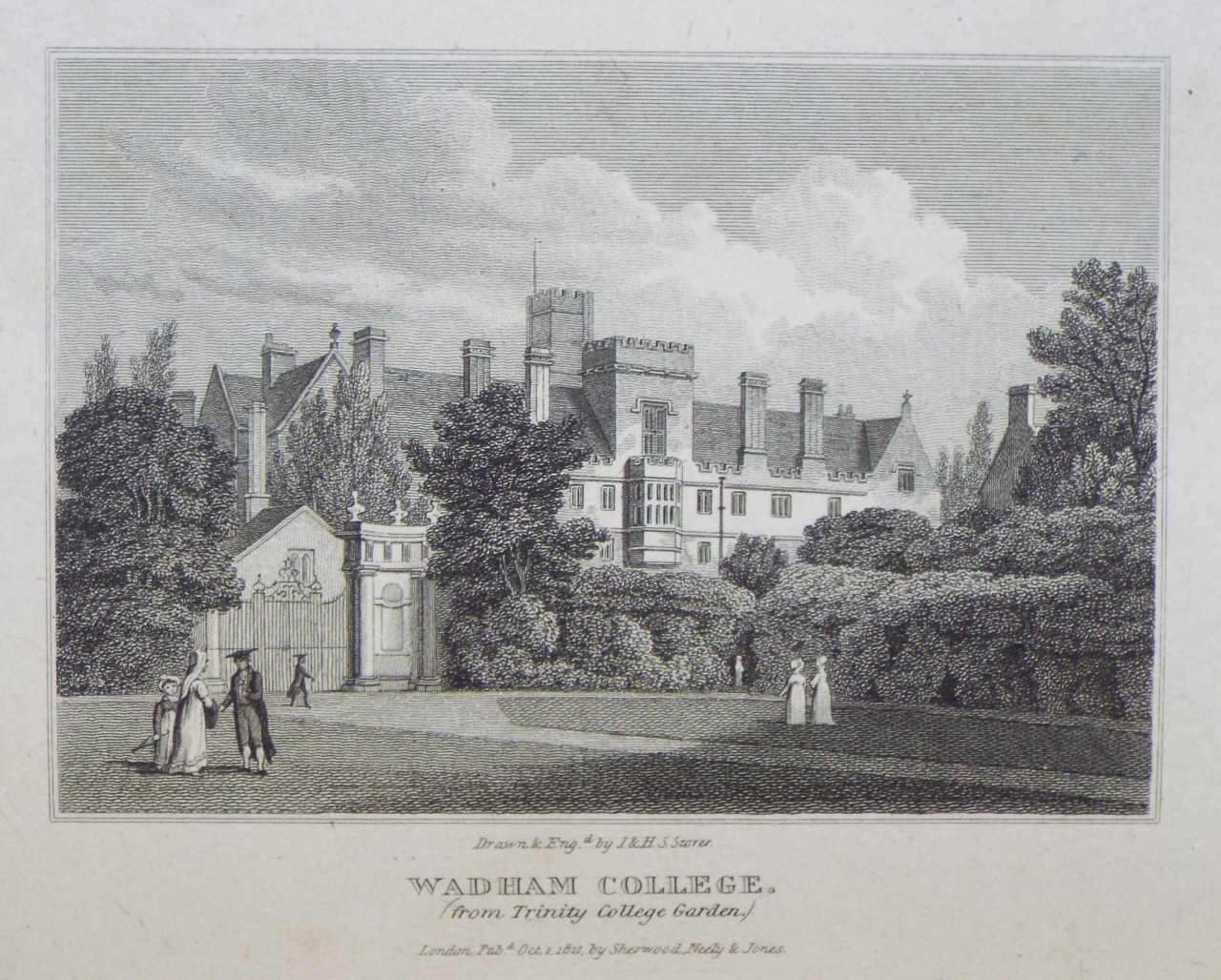 Antique Print - "Wadham College. (from Trinity College Garden.)" by J & H Storer published 1821 by Sherwood, Neely & Jones.