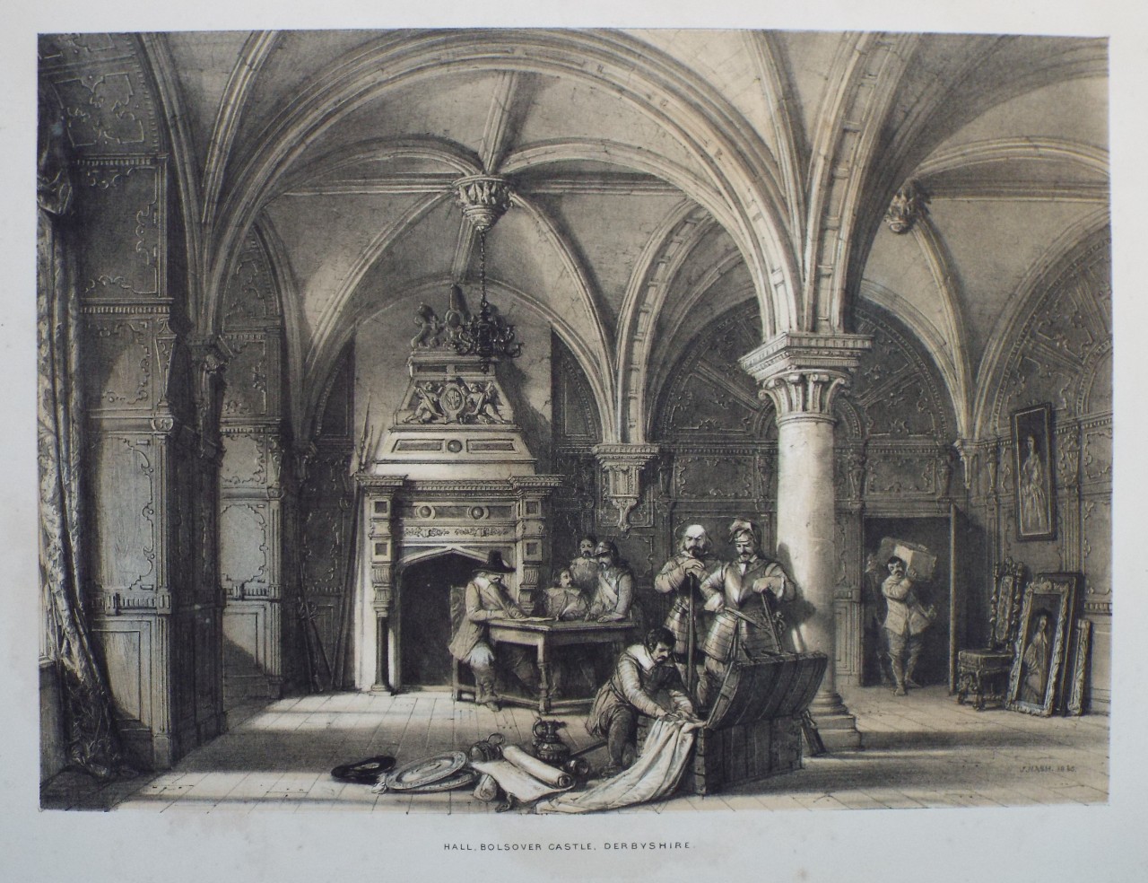Antique Lithograph - "Hall, Bolsover Castle, Derbyshire." by J Nash published 1840.