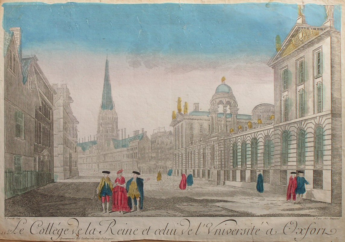 Antique Print - "Le College de la Reine et celui de l'Universitee a Oxford." by C Frusolle published by Ches Lachaussee rue St. Jacques.