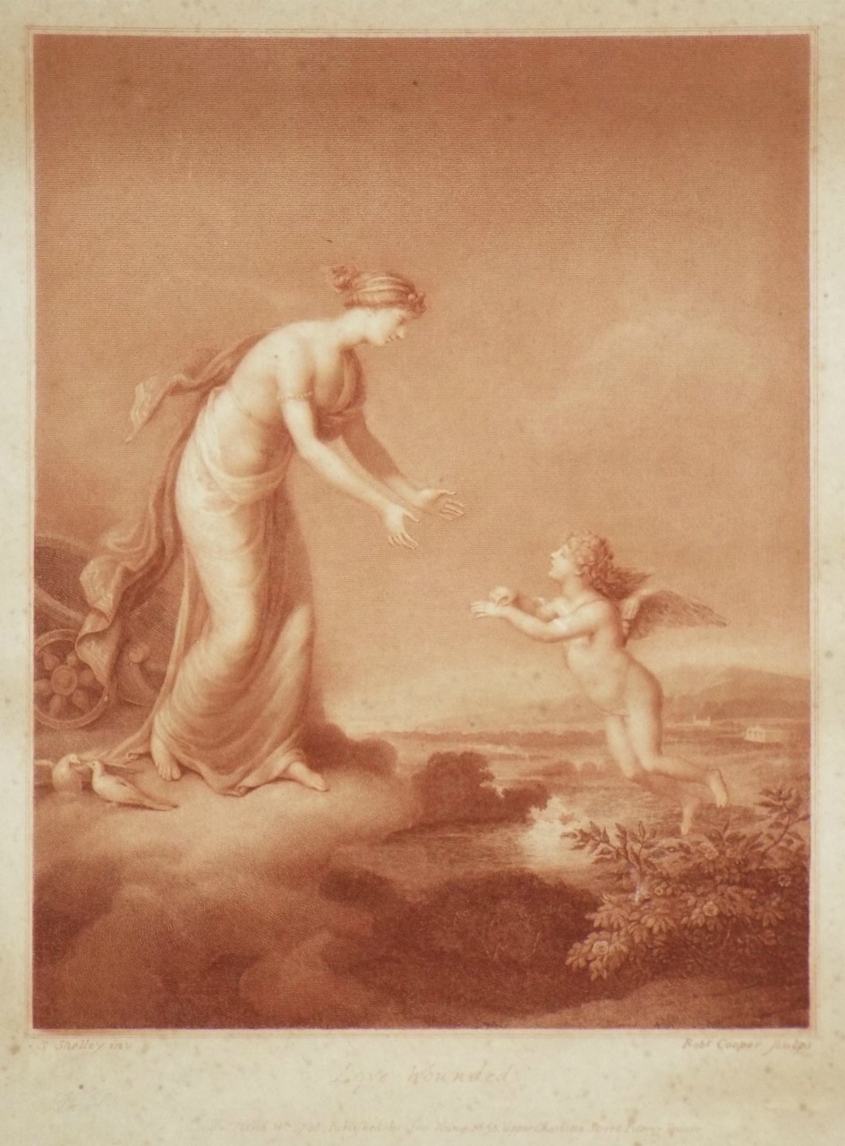 Antique Stipple - "Love Wounded." by R Cooper after S Shelley published 1798 by Jno. Young, No 58 Upper Charlotte Street, Fitzroy Square.
