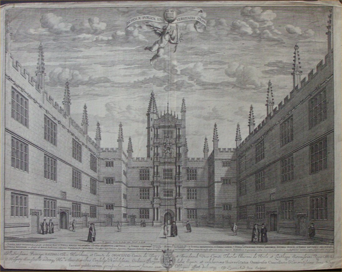 Antique Print - "Scholae Publicae Universitate Oxoniensi" by D Loggan published 1675.