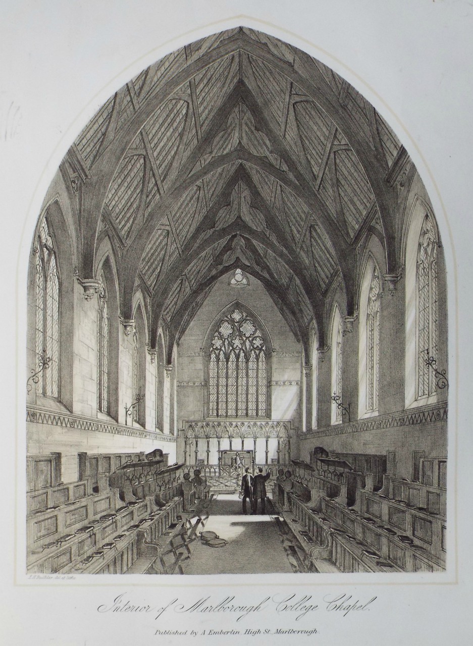 Antique Lithograph - "Interior of Marlborough College Chapel" by E H Buckler published by A. Emberlin, High Street, Marlborough.
