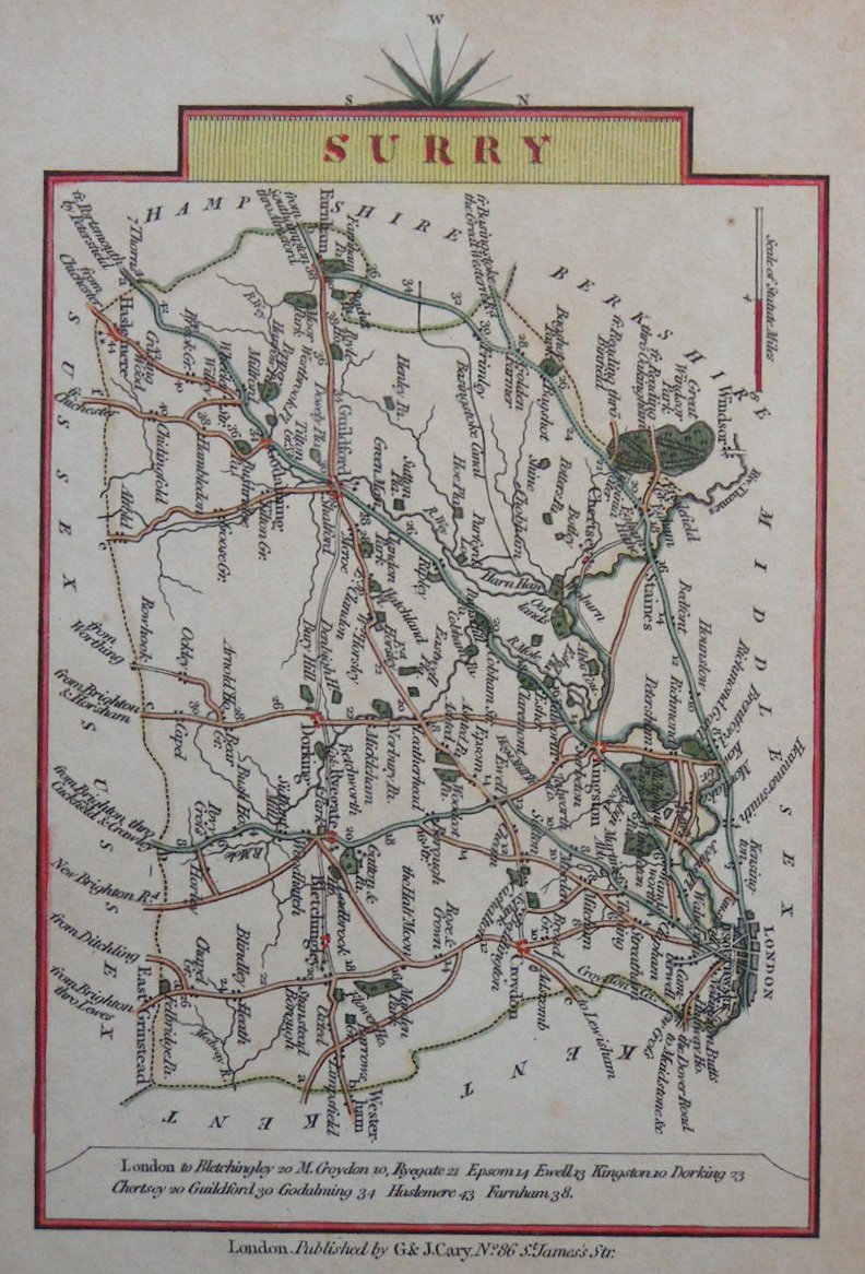 Antique Map - "Surrey" by J Cary published 1824 by G & J.Cary.