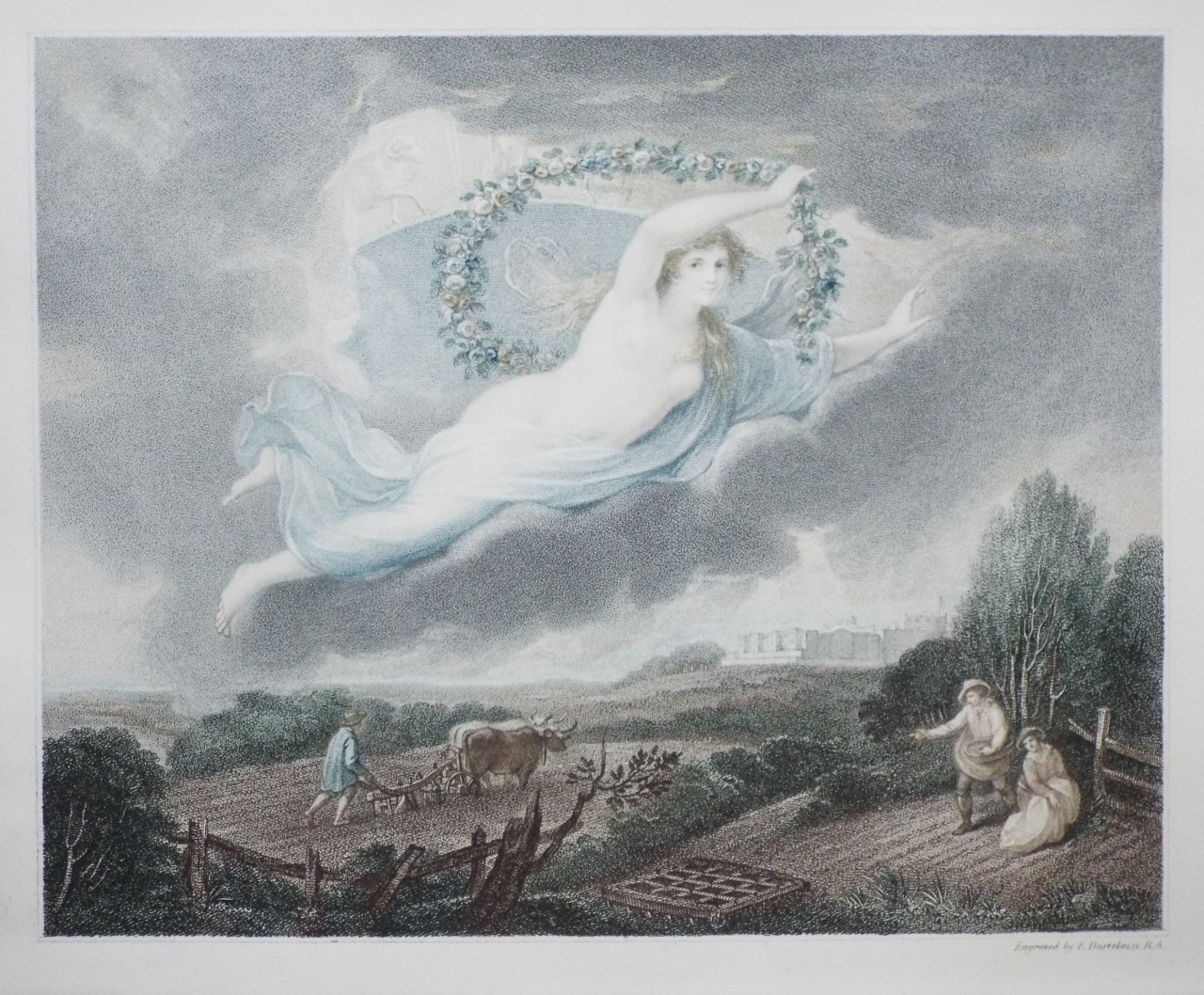 Antique Stipple - "Spring" by F Bartolozzi after W Hamilton published 1797.