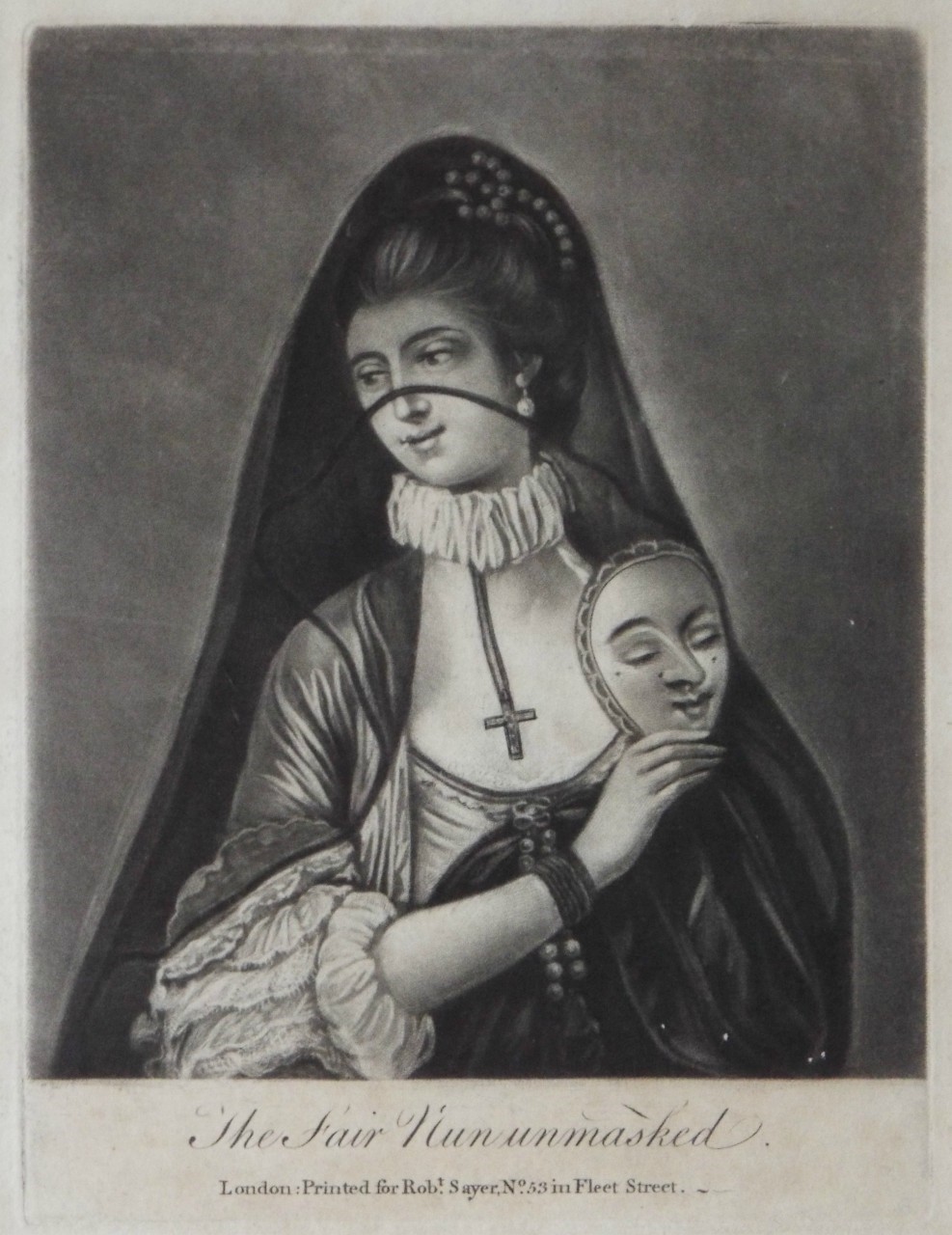 Antique Mezzotint - "The Fair Nun unmasked." after H R Morland published by Robt. Sayer No. 53 in Fleet Street.