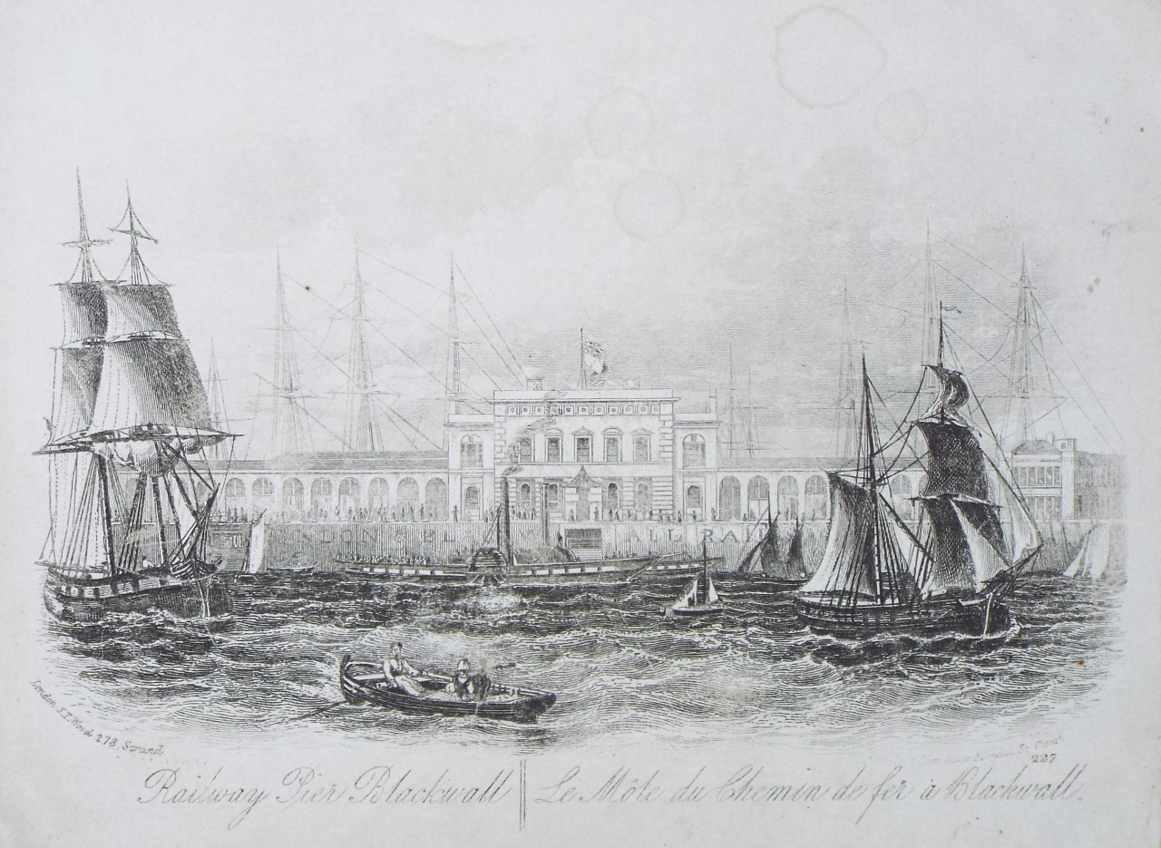 Antique Steel Vignette - "Railway Pier Blackwall | Le Mole du Chemin de fer a Blackwall." by Windsor, Card Maker, Meredith Street, Clerkenwell J. published by J. T. Wood 278 Strand, London.