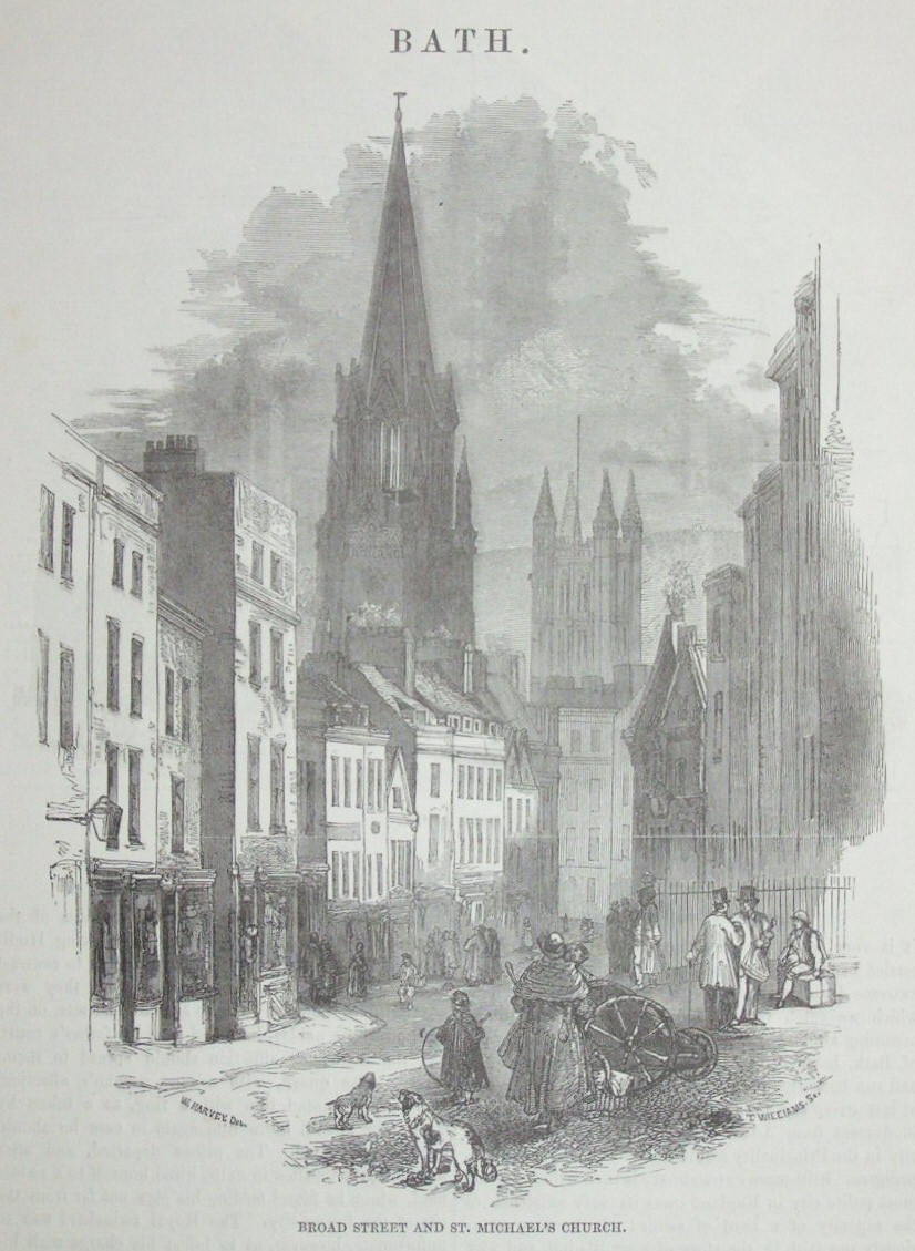 Antique Wood - "Broad Street and St.Michael's Church." by T Williams after W Harvey.