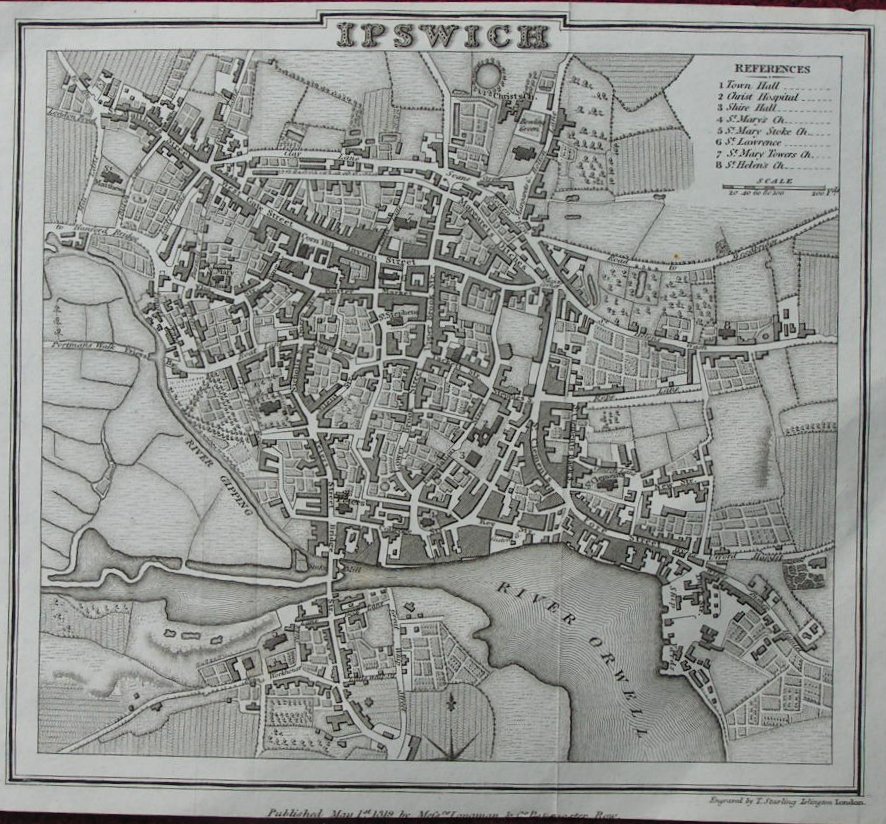 Antique Map - "Ipswich" by T Starling published 1819 by Longman & Co.