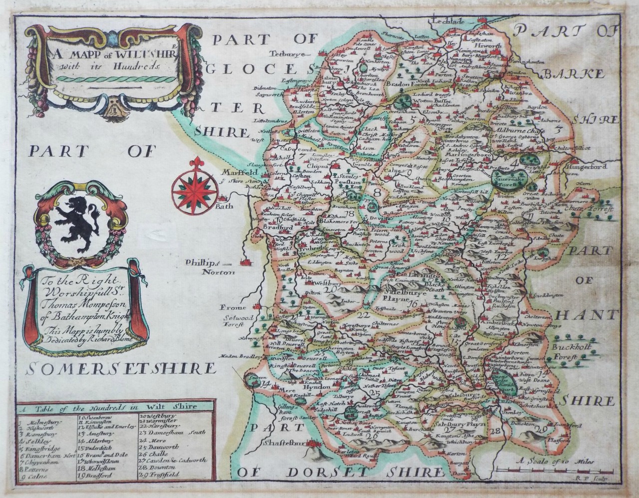 Antique Map - "A Mapp of Wiltshire with its Hundreds" by R Palmer after R Blome published 1693.