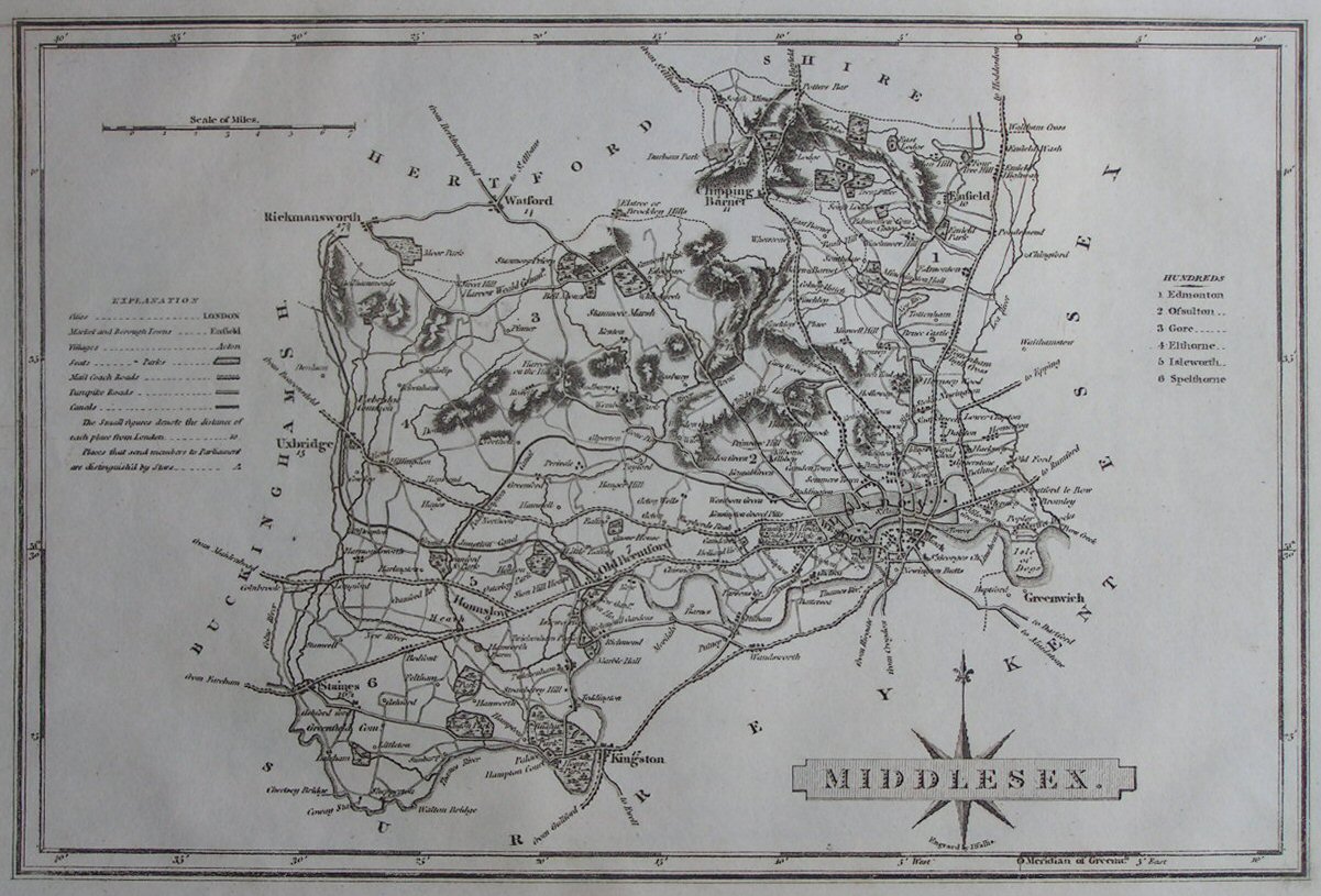 Antique Map - "Middlesex" by J Wallis published 1819 by G Ellis.