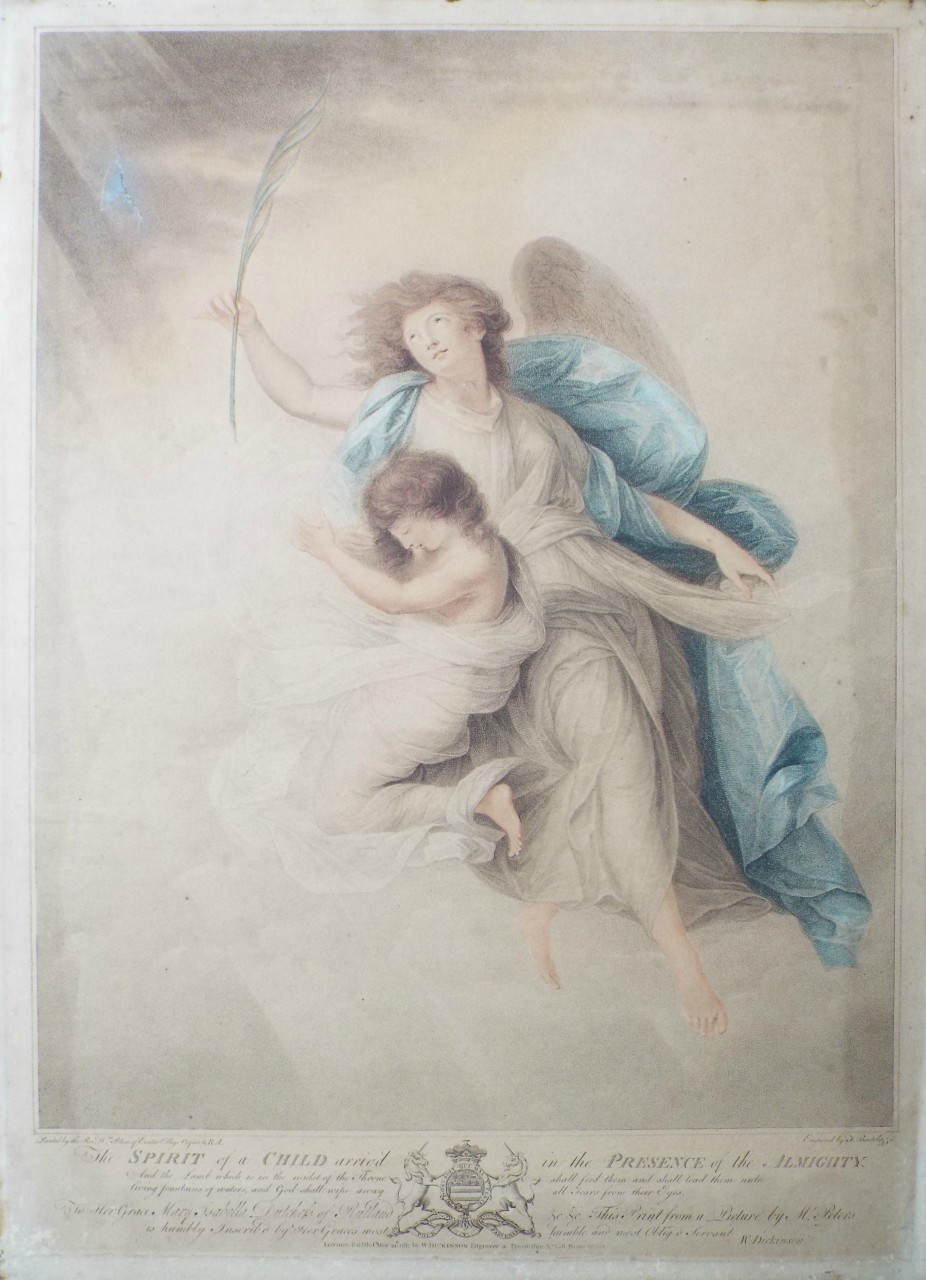 Antique Stipple - "The Spirit of a Child arriv'd in the Presence of the Almighty." by F Bartolozzi after W Peters published 1787 by W. Dickinson Engraver & Printseller No. 158 Bond Street. |